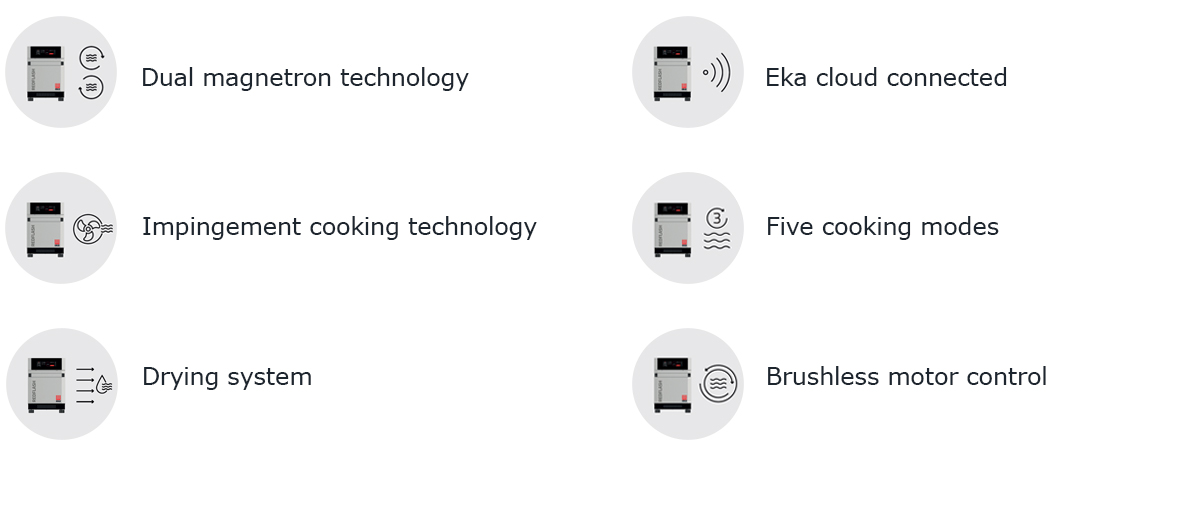 Sa faible profondeur permet une installation sur tous les plans de travail, et son écran horizontal de 8,8 pouces réduit la hauteur totale. Un design intelligent qui libère de l'espace tout en conservant une capacité de production maximale. Pas besoin de hotte: Red Flash s'adapte à tous les environnements.